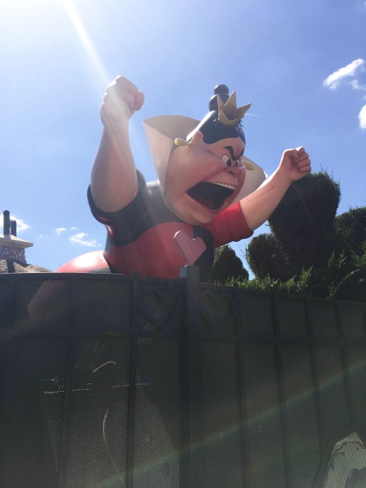 Next was Alice’s Curious Labyrinth, which I had never done before. I was expecting it to be more maze-like rather than following a path but I enjoyed it nonetheless. I loved all the statues throughout the labyrinth from the different parts of the film and the red queen who popped up over the hedge every now and then. It was great to be at the top of the castle and look out across the whole park and see Big Thunder Mountain in the distance.