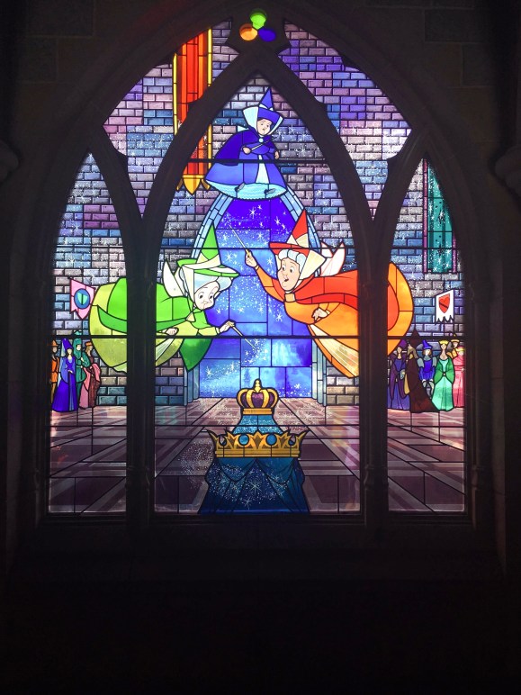We were slowly making our way back to Main Street USA for lunch so popped past L’Auberge de Cendrillon to see Cinderella’s carriage. We walked around the castle to admire the stained glass windows and popped into Merlin l’Enchanteur where you can watch some seriously impressive glasswork being made. Of course, we couldn’t visit the castle without seeing the dragon that sleeps below. It’s such an impressive animatronic and thankfully not hugely known in the park so it’s a less busy spot than anywhere else.