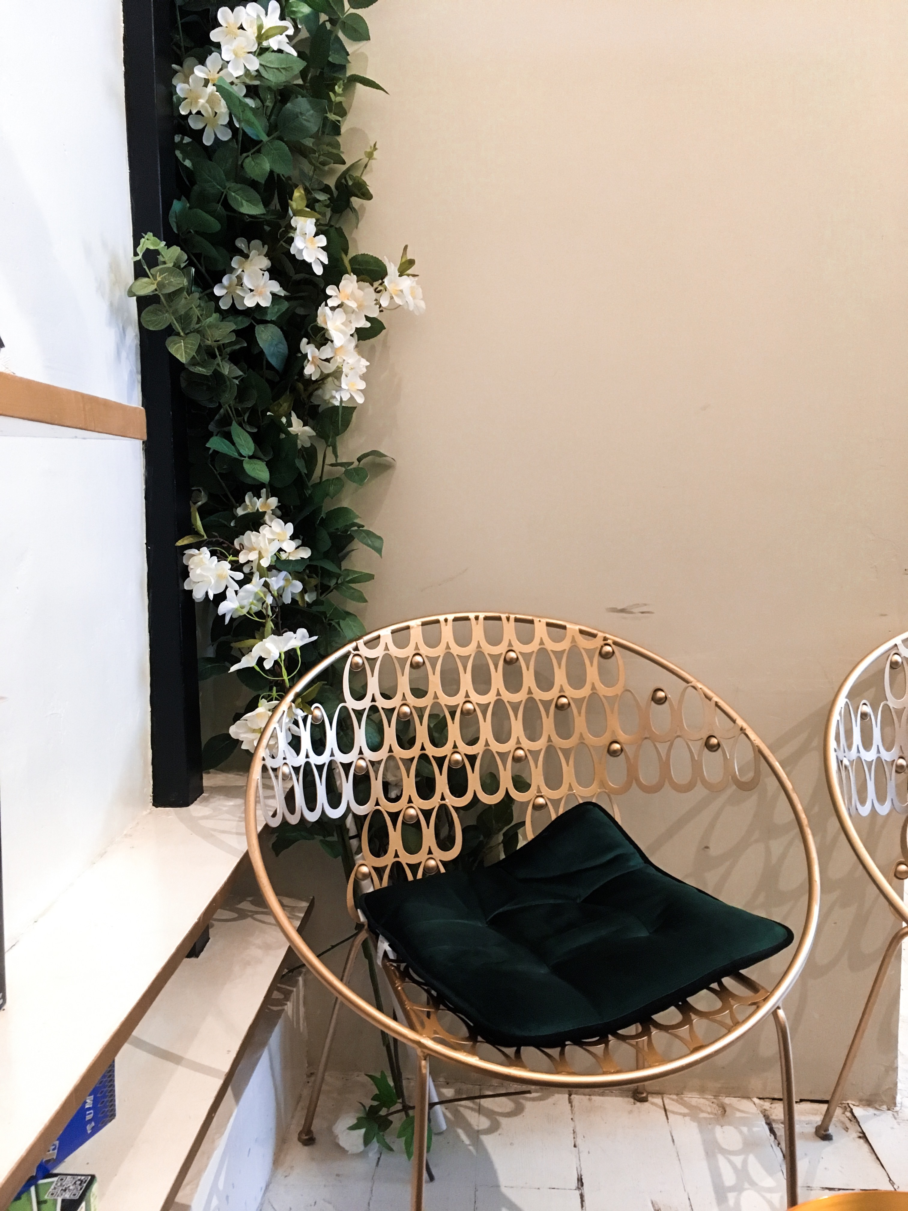 Oqo is basically my ‘Dream Home’ Pinterest board come to life as it’s how I picture my living room in twenty years time. I’m an advocate for dark walls and statement chairs as well as being a little obsessed with gold accents. Walking in, you are greeted with velvet sofas, pendant lights and a marble fireplace. Even the bathroom taps and drains are gold and there are plants everywhere, even on the ceiling. It creates the perfect relaxed vibe that I adore in coffee shops as well as being perfect for Instagram pictures.